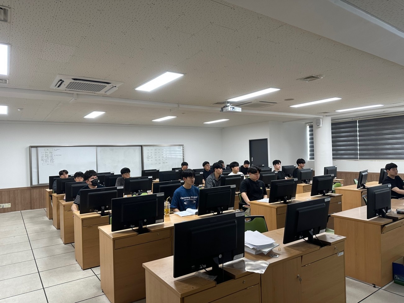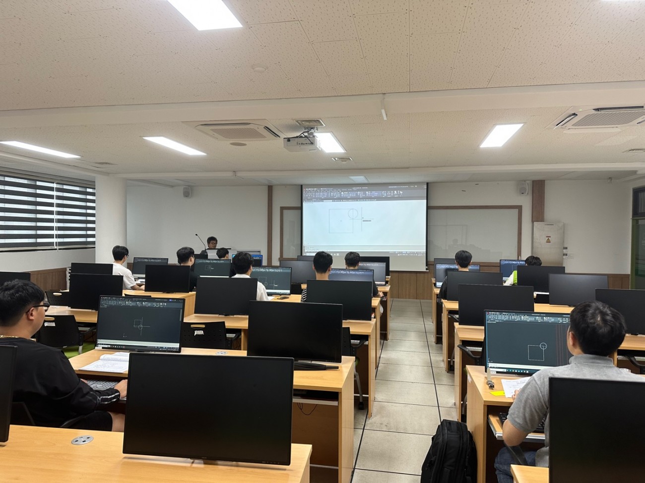 2023. 7. 10.(월) - 7. 21.(금) 실시된 AutoCAD 자격증 프로그램에서 AI자동차학과 학생들이 열심히 특강을 듣는 모습입니다.
