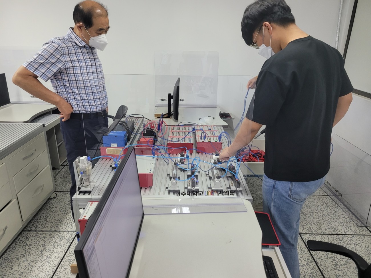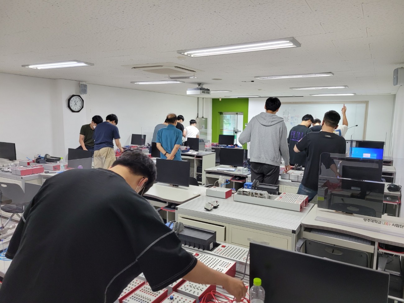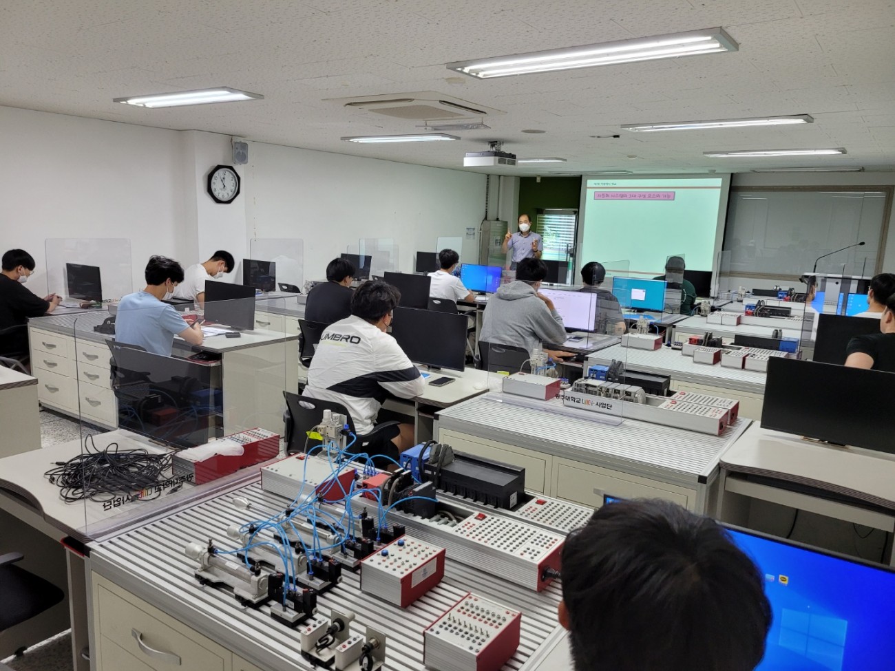 2022 7. 4.(월) - 7. 8.(금) 실시된 생산자동화기능사 자격증 프로그램에 AI자동차학과 학생들이 몰두하는 모습.